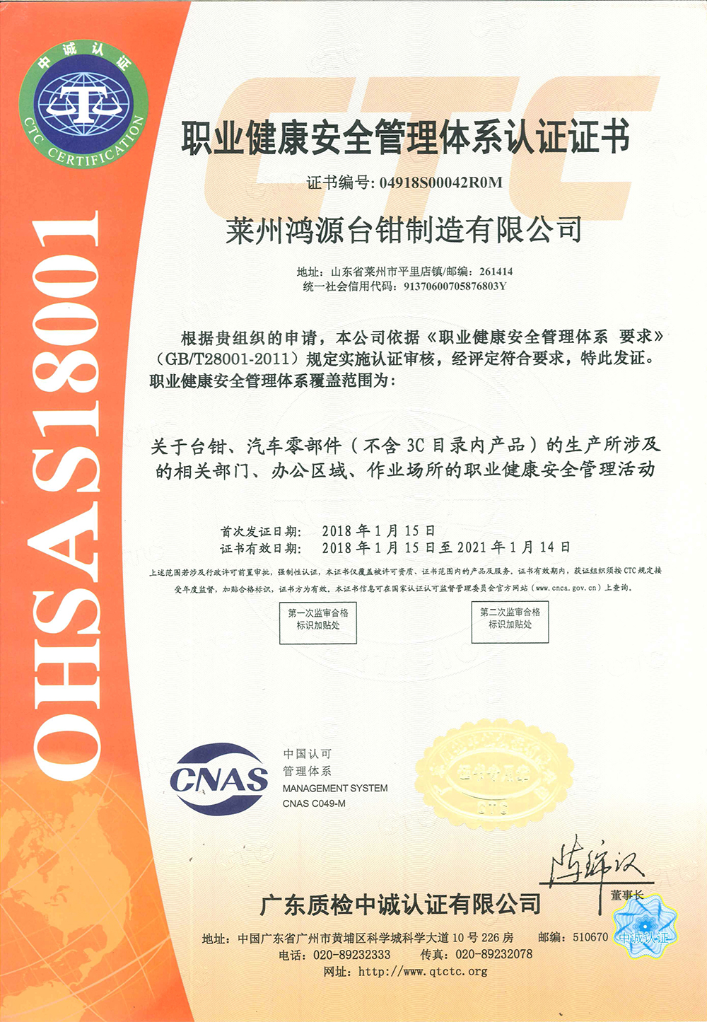 行業(yè)冠軍 萊州鴻源 --萊州鴻源臺鉗制造有限公司 萊州鴻源臺鉗制造有限公司坐落于美麗的山東半島萊州灣畔,地處山東半島藍色經(jīng)濟區(qū)、黃河三角洲高效生態(tài)區(qū)、膠東半島高端產(chǎn)業(yè)聚集區(qū)。地理位置優(yōu)越,交通便捷,已融入青島、煙臺、濰坊一小時經(jīng)濟圈。公司成立于1998年,由原萊州市臺鉗廠改制形成。占地面積10萬平方米,現(xiàn)有職工500人,其中工程技術(shù)人員90名。懷揣著振興民族工業(yè)的夢想,開拓創(chuàng)新,奮勇爭先,已發(fā)展成為中國臺鉗生產(chǎn)行業(yè)的領(lǐng)軍...